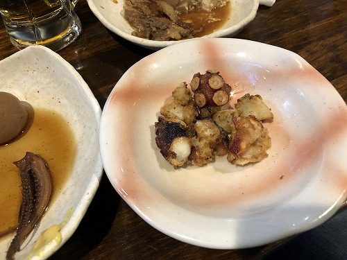 頼んだおつまみは、タコのから揚げ。