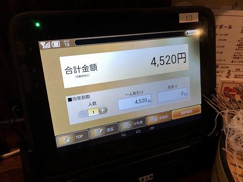 これだけ食べて、焼酎も2杯ずつ飲んでこのお値段!