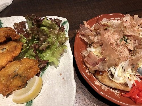 カキフライにお好み焼き。