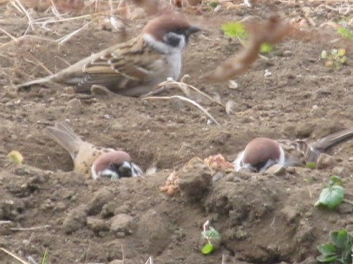 スズメは集団出来て、シジュウカラに悪さするから好きじゃないんだけど、ちょっとカワイイ光景が見れました。