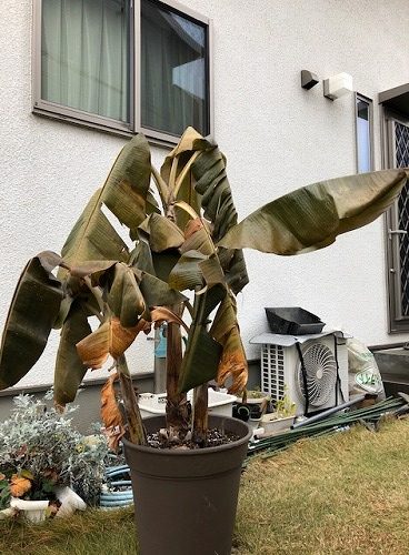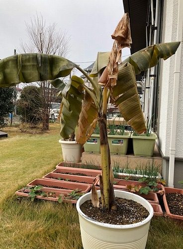 バナナはもうダメかもね、冬越しの支度をする前に霜に当てちゃったから。