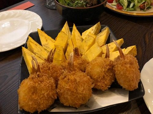 カニコロッケと厚焼き玉子。