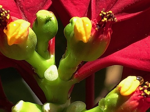 ポインセチアの花?のところから蜜のようなものが出ちゃってました。