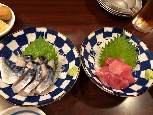 とりあえず、刺身系から〆さばと、マグロぶつ。
