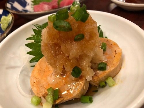 焼き鳥ばかりでも、なんなんで、ここであん肝ポン酢。