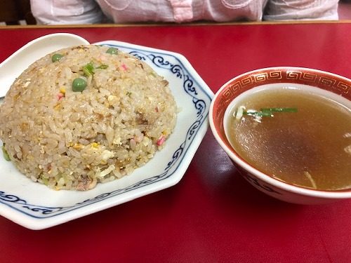 先にタンメンがきて、半分位食べ終わったころ、チャーハンが登場してきました。