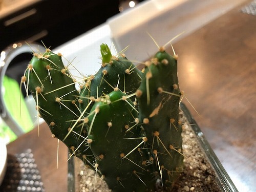 で、他のサボテンをよく見たら、先っちょから何かが出てきちゃってました。