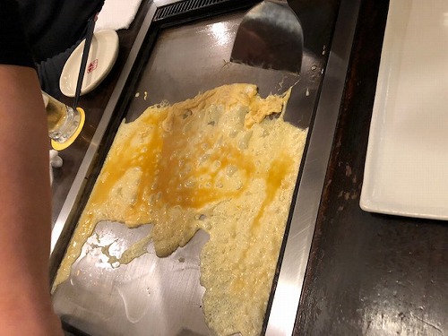 今日から、鉄板の上で卵焼きを作って出来立てを食べさせてくれると言うので頼んでみました。