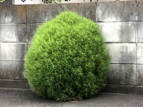 まずは、お庭ではないのですが、以前にも何回か登場している我が家の去年のコキアからのこぼれ種が、我が家の前のアスファルト道路に発芽し、現在はこれほどまでに成長してきました。