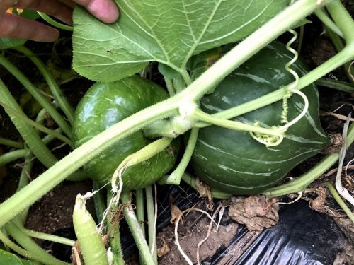 菜園に行くと、カボチャの2個目が大きくなってきました。
