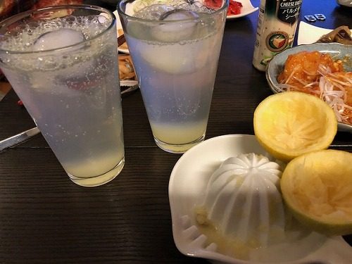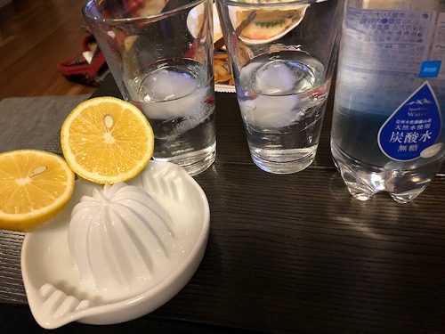 ビールは1杯にして、我が家産レモンでレモンサワーを作りました。