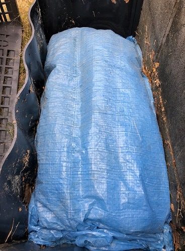 水を撒いて、上から踏み踏みして圧縮した後、ブルーシートを掛けておきました。