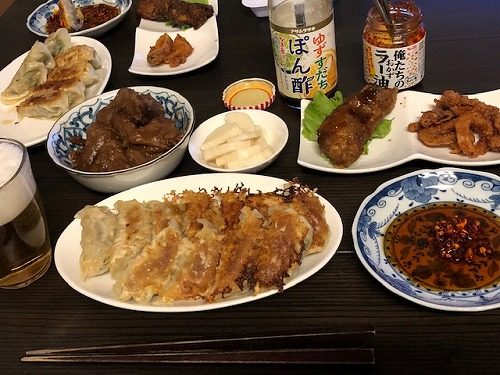 いつもは、ぎょうざの満州だったり、ホワイト餃子を買ってきて焼くんだけど、たまには自家製もイイね。