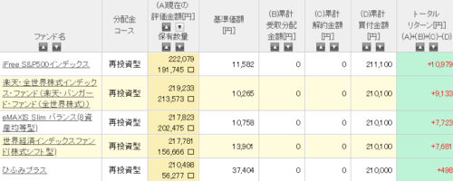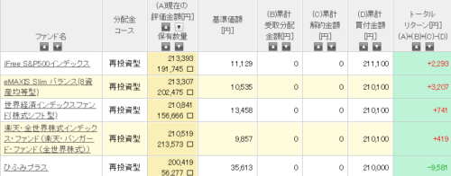 毎月の太陽光発電で得た利益で5銘柄を1万円分ずつ積み立てている投資信託のリターンはどうだったでしょうか?