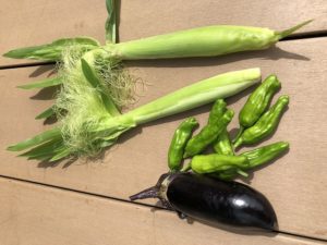 ヤングコーン2本と、シシトウ7個にナス1本。
