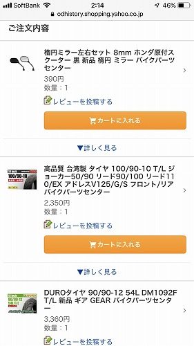 貰ったスペーシー100には、左ミラーがなかったのと、タイヤのひび割れが凄かったので、左右ミラーセットと前後タイヤを購入。