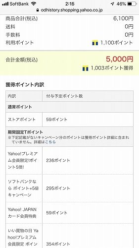 合計¥6,100なので送料無料で1,100ポイント使って支払ったのは、¥5,000也~