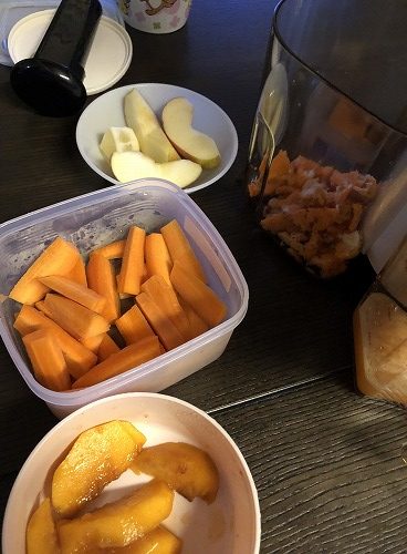 材料は、りんご・レモン・ニンジン・もも。