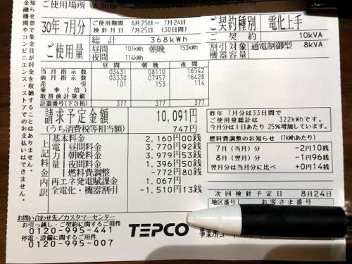先日、TEPCOから購入電力量などのお知らせが来ましたので、7月度の光熱費を記事にしたいと思います。