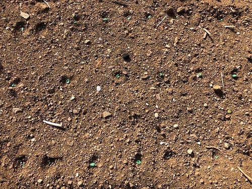 蒔き方も、30センチ間隔で3,4粒ずつ蒔くって書いてあったけど、ほぼバラマキに近い状態でやっちゃった。