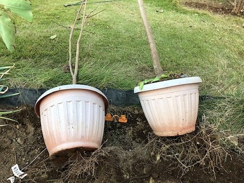 菜園の奥の方にも、似たような鉢が2個もあったので、恐る恐る鉢を持ち上げようとすると~