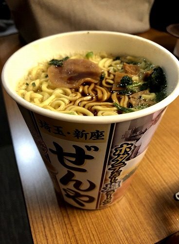 家内が、ここにきてラーメンが食べたいというので、せっかく新潟県に来たにもかかわらず、地元埼玉のぜんやのカップラーメンを購入しホテルで食べました。