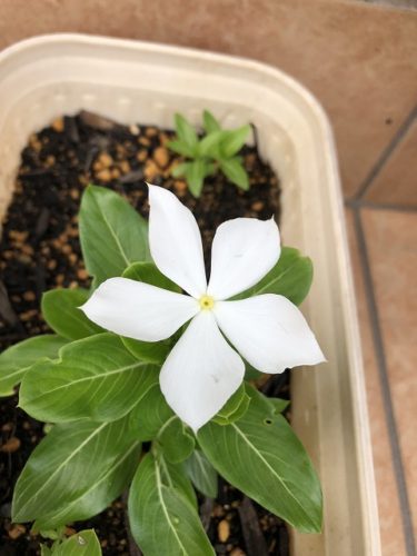 だいぶ前に、タネを蒔いたニチニチソウですが、やっと花を咲かせてくれました。