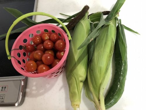 他にも、トウモロコシ2本とキュウリ1本、プチトマト多数。
