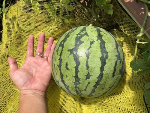 他の木に、絡みついてたカボチャの蔓を全部引きちぎって、菜園に放り込んでおきました。