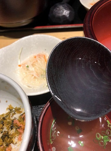 高菜明太ご飯も美味しいんだけど、この出汁スープが有ったりさくら漬けが有ったりするので、味の濃い高菜明太ご飯じゃもったいないような~