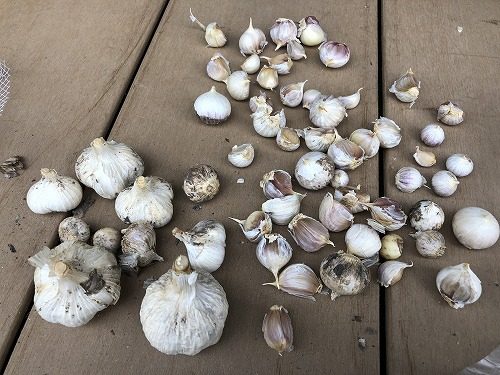 まずは、去年不作だったニンニクを物置に干してあったことをすっかり忘れてましたので、そいつをポット植えにしてみました。