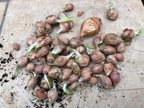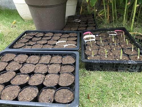 右側の発芽してるやつは、今年カインズで購入したもの。