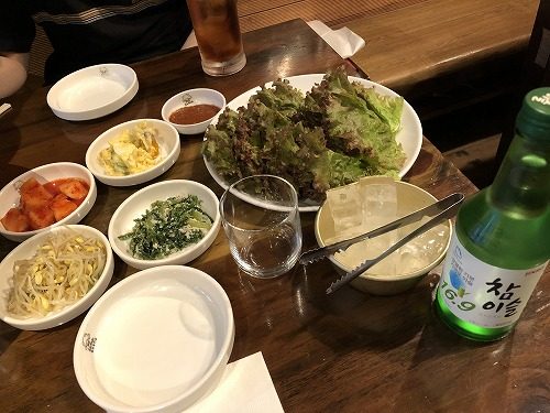 その間、チャプチェをつまみにチャミスルをさらにグビグビ。