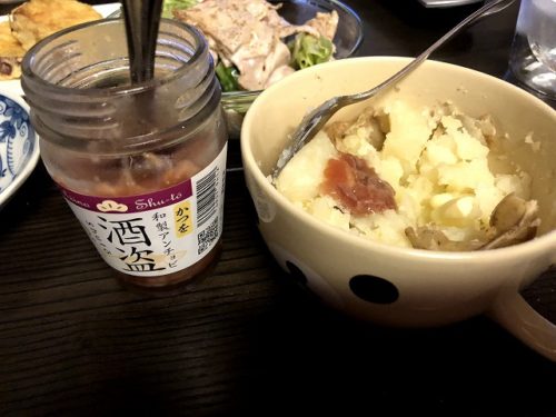あっ じゃがバターは、イカの塩辛を載せても美味しいけど、酒盗でも美味いよ。
