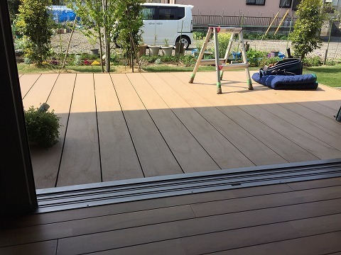 それ用に、我が家はウッドデッキとリビング一体感を出す為に、段差の少ないノンレールサッシにしたり、軒部分を多くするためにリビングを凹ませた形に設計しました。